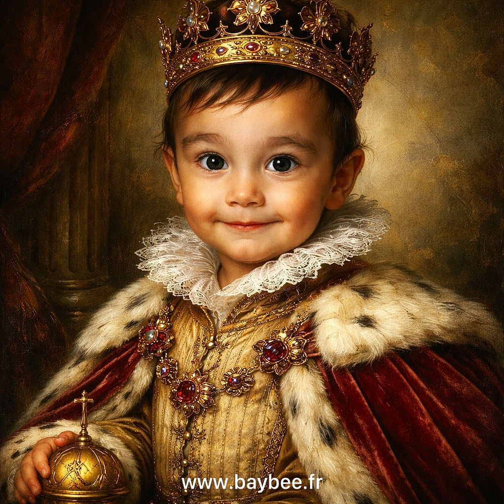 • A curious 5-month-old baby with striking blue eyes and soft brown hair is captured in a cozy floral onesie, gently sucking on a finger against a dreamy, flower-filled backdrop. The photo radiates warmth and innocence, with a delicate text overlay noting the baby's age in French.