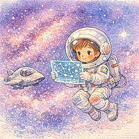 Chaque soir, Fille tient son coquillage. Il brille doucement. Dans la nuit, la perle qu’elle porte brille aussi. Elle raconte son aventure à la lune. La lune sourit et lui envoie une lumière argentée.