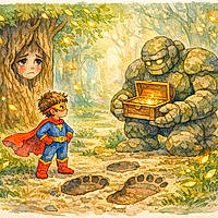 Lucas propose : « La lampe brille pour nous deux. Et toi, tu me laisses le caillou-étoile. C’est mon trésor. »